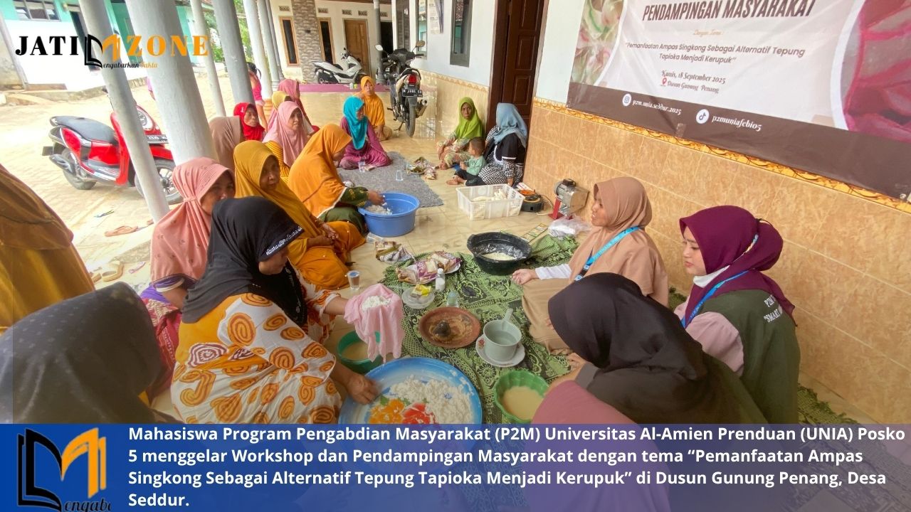 Kali ini, mereka menggelar Workshop dan Pendampingan Masyarakat dengan tema “Pemanfaatan Ampas Singkong Sebagai Alternatif Tepung Tapioka Menjadi Kerupuk” di Dusun Gunung Penang, Desa Seddur, pada Kamis, 18 September 2025.