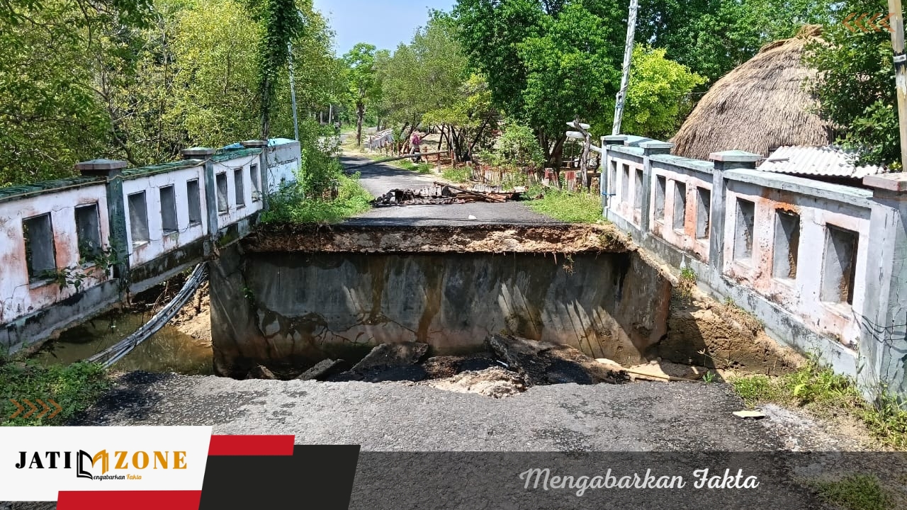 JATIM ZONE – Jembatan penghubung antarwilayah di Desa Bringsang, Kecamatan Giligenting, Kabupaten Sumenep, yang ambruk pada Jumat, 05 Desember 2025, hingga kini belum juga diperbaiki.